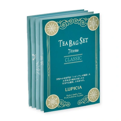 A classic selection of 7 of LUPICIA's high grade tea bags in a stylish limited edition 2025 Xmas design paper gift package.