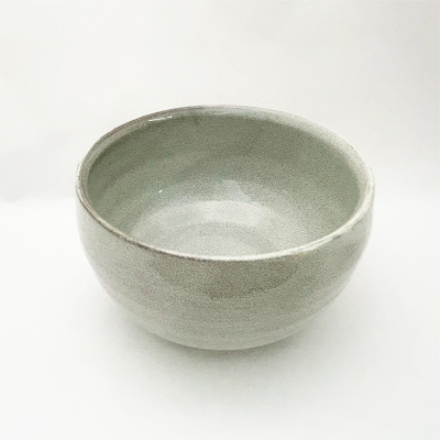 This Hasami ware matcha bowl features a soft gray kairagi pattern with white undertones. The subtle, textured pattern is created naturally as the glaze shrinks during firing, making each bowl truly one of a kind. Its quiet tones complement not only matcha but also seasonal sweets or soups, fitting seamlessly into modern dining and tea settings.